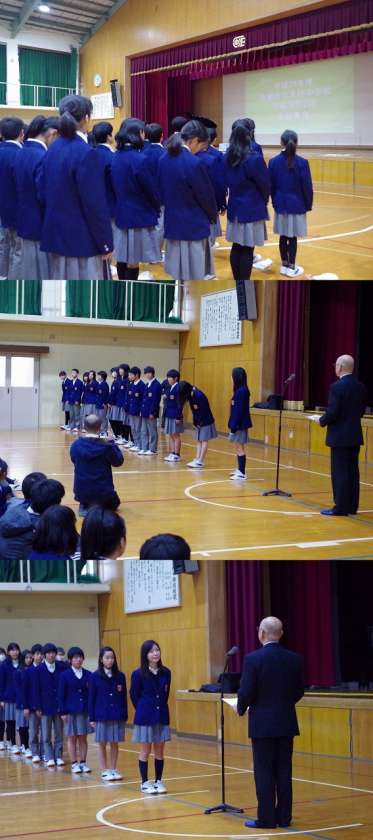 を行いました。原稿を見ないで話せた役員、顔をしっかりとあげて全校生徒を見て話せた役員、マイクに頼らず大きな声で話せた役員と確実に自覚と成長している姿を見ることができました。