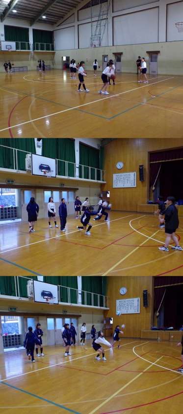 女子バレーボール部は、オーバーハンドパスとアンダーハンドパスの練習をキャプテンを中心として繰り返し行っていました。飛び込む生徒もいてビックリしました。しっかり腰を落とし、まっすぐ返すことができていました。