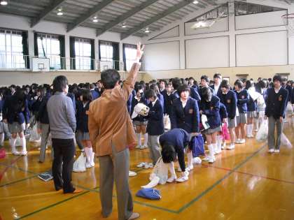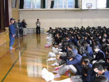 あいにく連日の低温と雪でグランドの状態が悪く、体育館への集合