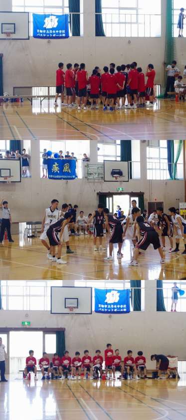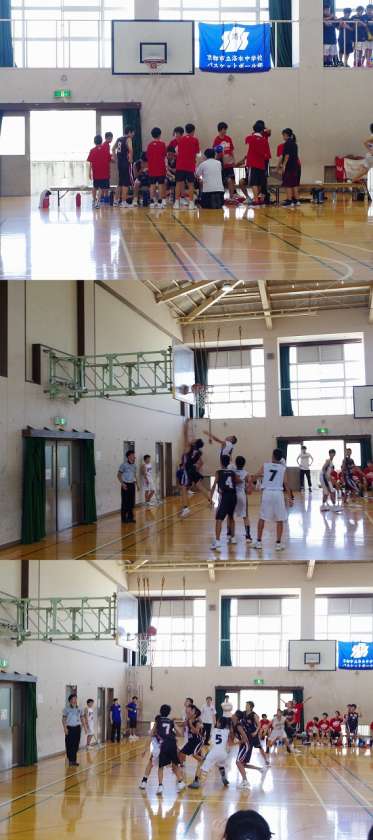 15日洛水中学校会場で男子バスケットボール部は、強敵西賀茂中学校と対戦をしました。受け身になってはやられると試合開始早々から積極的な攻めを展開し、相手にプレッシャーをかけます。前半から完全に大枝中の流れでゲームを進めていきます。