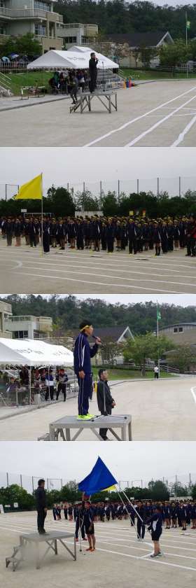 校長先生からの「激励の言葉」、生徒会長のOくんからの「思いのこもったあいさつ」、体育委員長のTくんの「力強い選手宣誓」が行われました。