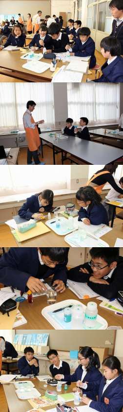 汚れが落ちるメカニズムや2種類の洗剤を使っての洗濯と水の量について実験や講義を受けました。