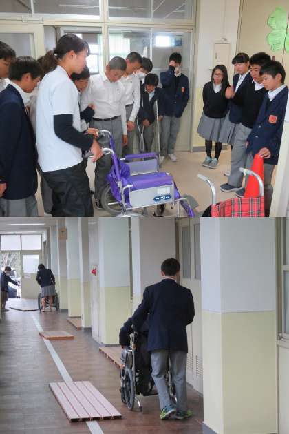 1年生は人権学習の中で、車いす体験とアイマスク体験をしました。