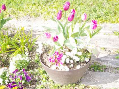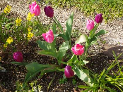 花壇のチューリップがひらき始めています!!