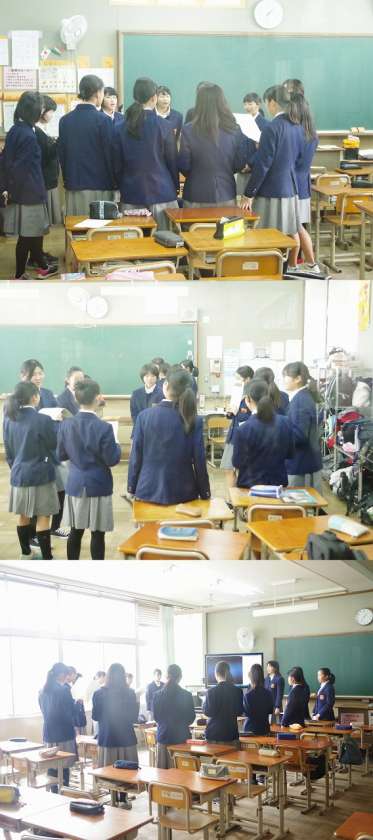 1年生は体育館で 2年生は学年棟でパートに分かれて 送る会に向けた合唱練習を行いました。学校中に歌声が響き、曲も感動的で卒業が近づいてきているだと感じさせる時間でした。