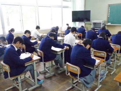 これまでの学習の定着を確認するために、また今後の学習に生かすために大切なテストです。どの生徒も真剣に取り組んでいます。