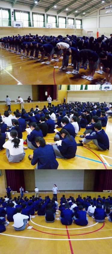 本日は体育館に集まり、「しおり」の読み合わせを行いました。