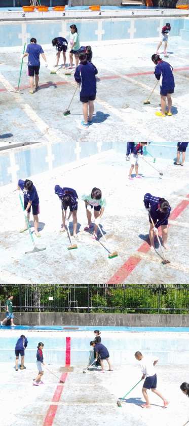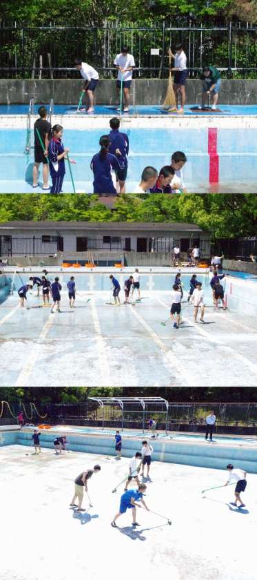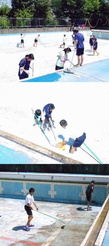 本日昼から「プール清掃」を体育委員会で行いました。