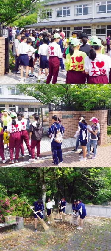 大枝中学校からは、生徒会本部・女子バレーボール部・陸上部から51名、教職員5名の計56名が参加しました。