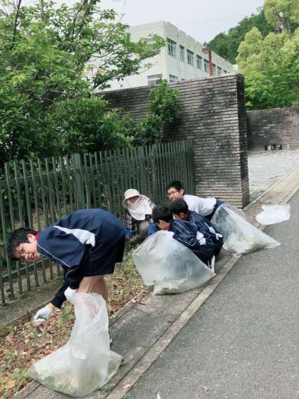 本日事業所がお休みのメンバーは学校に来て、管理用務員さんの濱田さんと作業をしてくれました。雑草が伸びていたのですがとても頑張ってくれて、見違えるほどきれいになりました。ありがとう。明日からはまた、それぞれの事業所で活躍してきてください。
