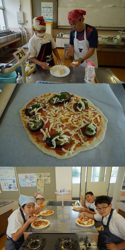 園芸で「収穫した野菜」と先日行った「買い物学習」で買った材料を使って「ピザづくり」をしました。