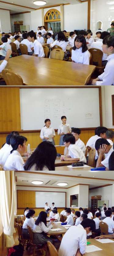 学校をひっぱっていくリーダーとしての自覚と力量を高めることと、生徒全員が協力して取り組めるような学校づくりを図るために必要な力をつけることをねらいとしてしています。
