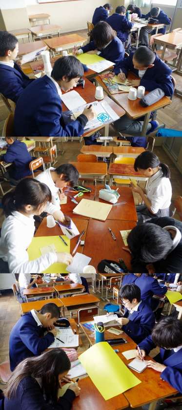 その後は、学校に戻り「振り返りのまとめ学習」をしました。自分たちの進路を考えるうえでの参考材料にしてください。