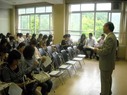 体育館でメモを取りながら、熱心に耳を傾けておられました。