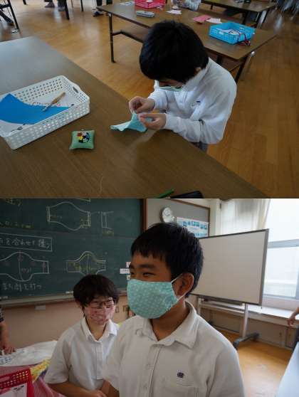 新型コロナウイルス対策のために家庭科の授業でマスク作りをしました。