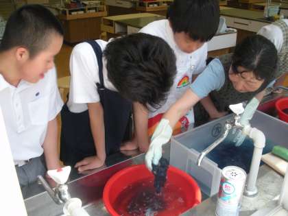 地域の学校支援ボランティアの先生に指導して頂いて、作業をしました。