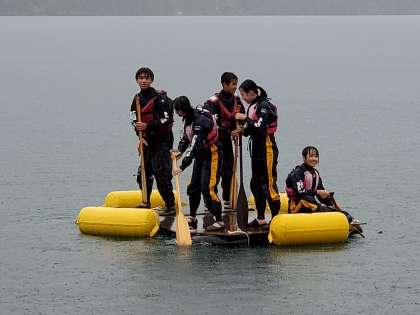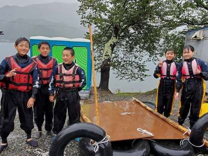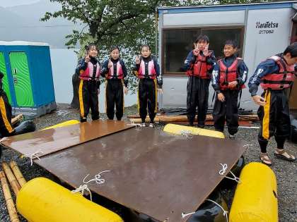 途中で崩れてしまったいかだもありましたが、全員を乗せた6つのいかだが見事に水面に浮いた時は、歓声が起きていました。