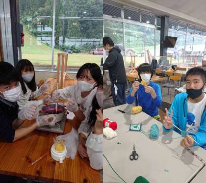 マウンテンバイクが雨の影響で中止になった関係でマウンテンバイクを選んでいた人と一緒に体験をしました。バニラアイスとジャムを作るのはもちろん好運を呼ぶ飾り「ゴッドアイ」を作る体験もさせてもらいました。