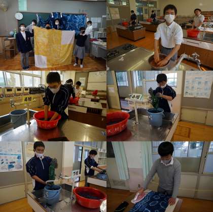 身近な材料を使って布を染め,丁寧な作業で一生懸命取り組むことで綺麗な作品ができあがることに気づくことができましたね。