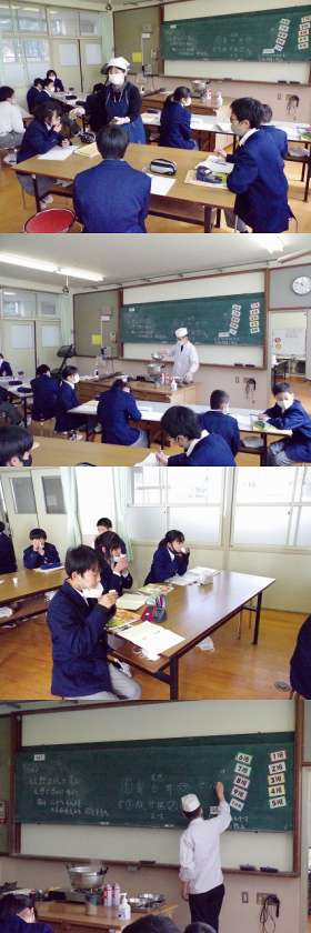 また,「食の文化」の素晴らしさについてお話をしていただきましたがとても興味深そうに聞き入っていました。お雑煮やおせち料理では「お正月」がイメージできるけど,ひな祭りにケーキを食べるお家があっても「ケーキ=ひな祭り」ではないことや,なぜ食事の前に「いただきます」と言ってから食べるのか,その意味について説明をしていただきました。毎日,あまり考えずに過ごしていること,気にしていなかったことにこんな大きく大事な意味があることだったんだと知り驚きを感じていた様子でした。