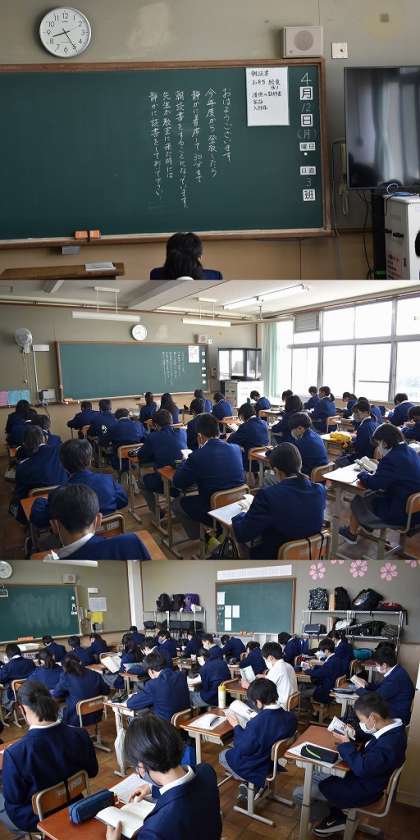今年度よりルールがかわり,登校してきた者から荷物を置きすぐに読書に入ります。どのクラスも落ち着いた様子で読書に入っています。(素晴らしい!)