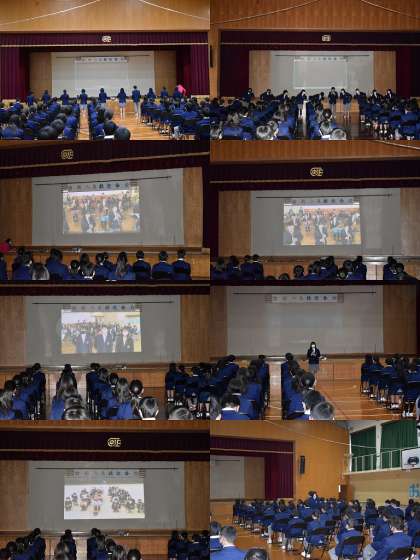 生徒会本部役員による「オープニング」パフォーマンス,ダンスから会はスタートしました。続いて,「吹奏楽部による演奏」を映像で見ました。カッコよかっです。