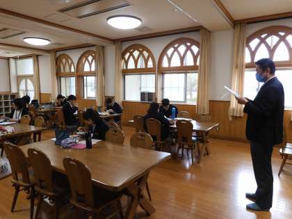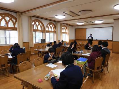 今週の14日(水),週に一度,昼食時に行われる生徒会役員による中央委員会に校長先生が参加されました。