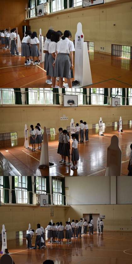 生徒たちは,はじめて見るメッセンジャー一体一体に書かれている背景を知り,遺品を前に「いのちの重み・尊さ」について真剣に考えてくれていました。幼い赤ちゃんや児童が交通事故に巻き込まれて亡くなった記事を読むと涙ぐんでいる者もいました。「痛かっただろうなあ」「怖かっただろうなぁ」「悲しかっただろうなあ」「お父さん,お母さんは悔しかっただろうなあ」みんな「つらかっただろうなぁ」・・・・・感想を述べてくれました。