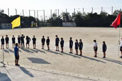 はじめての大枝中学校体育大会,大きく成長した1日でした。「Team Work」を目標に練習から当日まで一生懸命取り組めました。真剣に走る姿,真剣に競技に取組む姿は本当にかっこいいです。人に感動を与えます。次なる目標に向けて,みんなの頑張りを楽しみにしています。