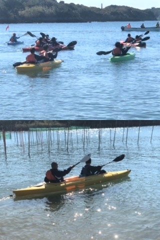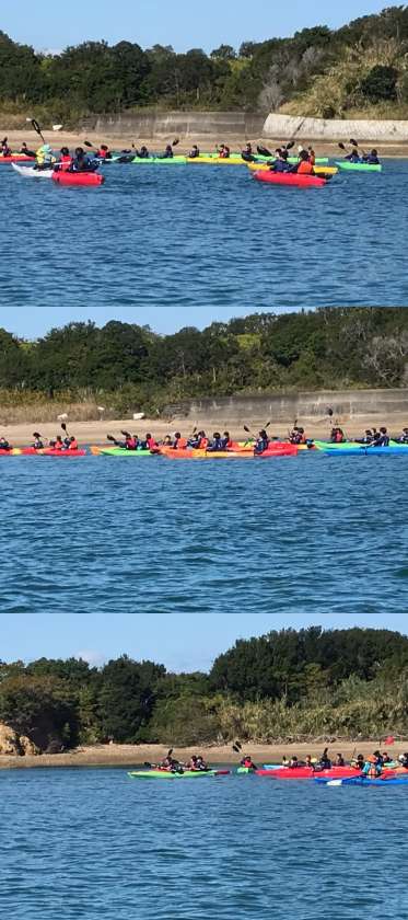シーカヤック体験スタート。天気も良く、波も穏やかで、とても楽しそうです。