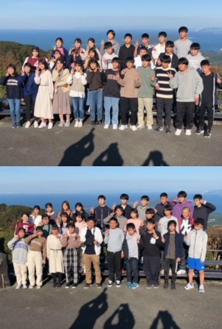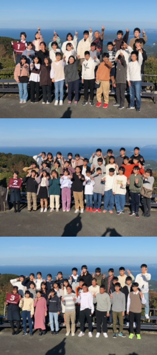 朝熊山山頂展望台にて、学級写真撮影です。