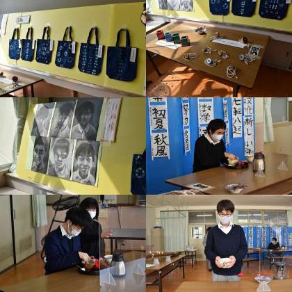 一年間に作った作品や書初めなどたくさんの展示品を,ひとつずつ丁寧に紹介をしてくれました。最後にコマ回しも披露してくれました。とても楽しい時間でした。1組生徒の一年間の頑張りと成長が見れた時間となり,うれしかったです。