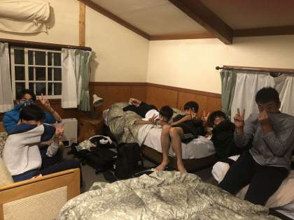 昨夜のペンションでの様子です。就寝前の楽しいひとときです。