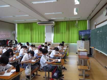 1年生は漫画ワンピースを題材に、なぜ差別は起こるのかという視点から考えを深めました。とても落ち着いて、活発に意見を出しながら学習に取り組んでいました。