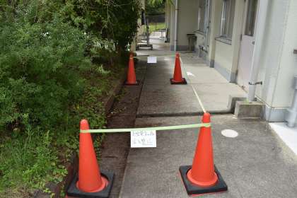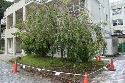 C棟前の桜の木に大量の毛虫が発生しています。注意をしてください。