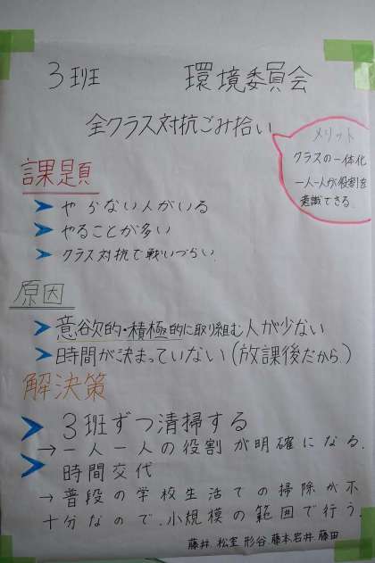 3班環境委員会「全クラスでごみ拾い対抗戦」
