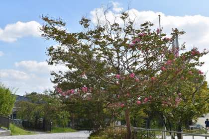 グランド横のさるすべりの木がきれいな花を咲かせています。