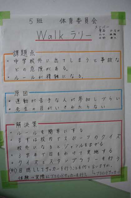 5班 体育委員会 と 6班 文化委員会の提案です。