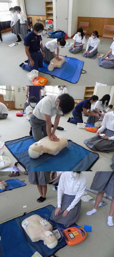 本日,西京消防署の方に来ていただいて,「救急救命法」について教えていただきました。