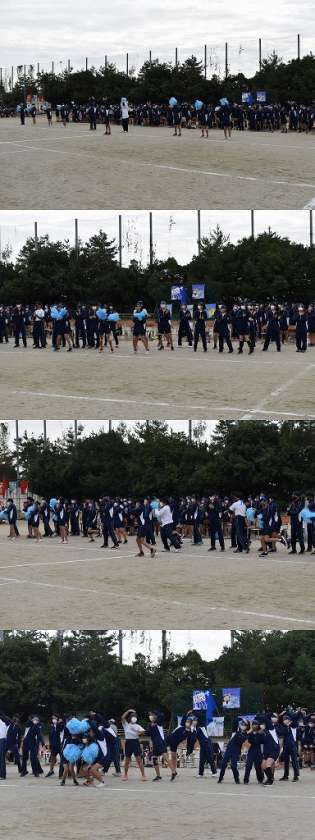 団長さん、3学年をまとめるのは大変だったでしょうが本当によく頑張ってくれました。ご苦労様でした。各色の学年代表の応援リーダーのみなさんも団長を助けながらよくやってくれました。ありがとう!!