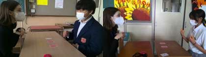 『将来、留学してみたいか』などのテーマについて、自分の意見を伝えながら、英語で会話しています。みなさん緊張していましたが、ネイティブスピーカーと即興的に話すいい機会となりました。