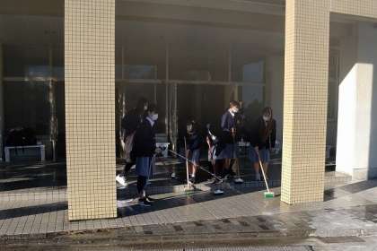 本日のO枝の日では,各学年棟の玄関を掃除しました。
