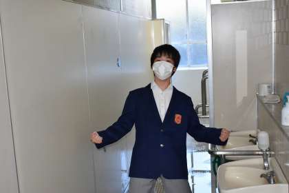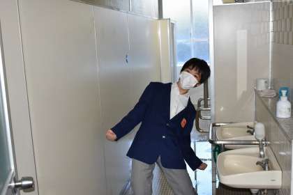 1組のIくんが東校舎1階のトイレ掃除をしてくれました。