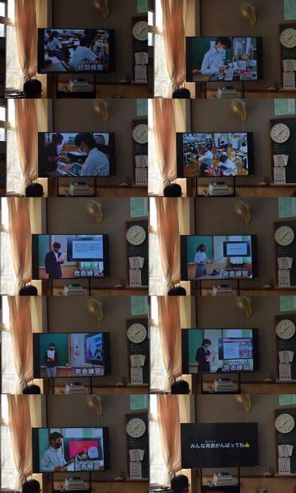 これまで頑張って取り組んできたことについて紹介されたあと「みんな本当に良く頑張って取り組んできました。今日は、自信を持って発表しよう。」と励ましのメッセージが送られました。