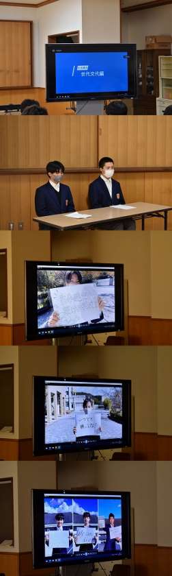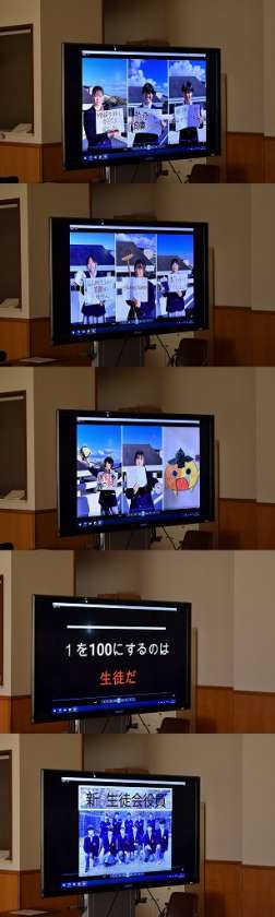 最初に旧生徒会本部役員と新生徒本部役員による動画を視聴しました。