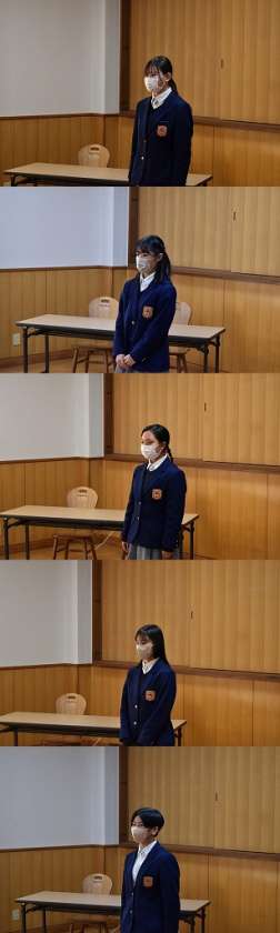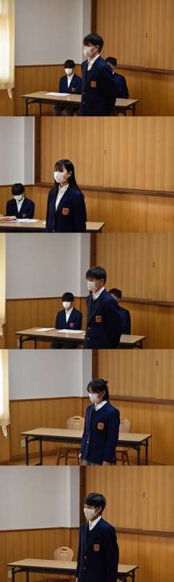 続いて、旧生徒会本部役員一人一人から全校生徒へ、一年間の協力へのお礼と活動を通しての成果及び成長を話してくれました。