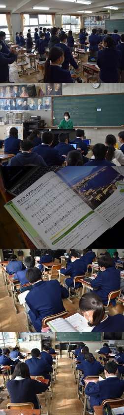 前半は、「Joyful,Joyful」の曲を聴き、曲想のちがいを感じ取りどのような表現がなされているか、それぞれから発表されました。そして、ちがいを感じながらどのように歌えば良いか工夫しながら合唱をしました。