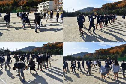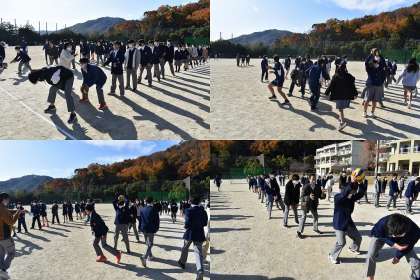 昼休みに2年生全員で「ボール送りリレー」にチャレンジしました。