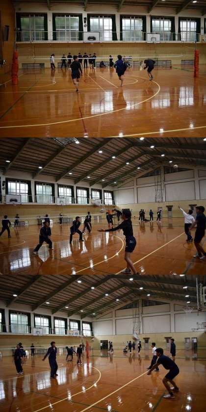 体育館では、男子バレーボール部・男子バスケットボール部が練習をしています。