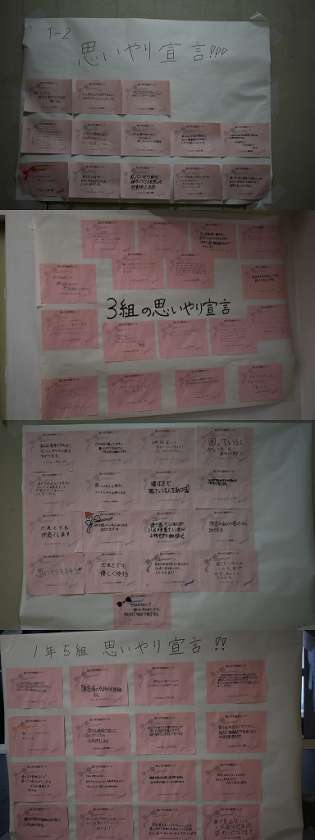 人権学習を終えたあと、一人一人ができる(心がけていく)行動宣言を考え記入しました。